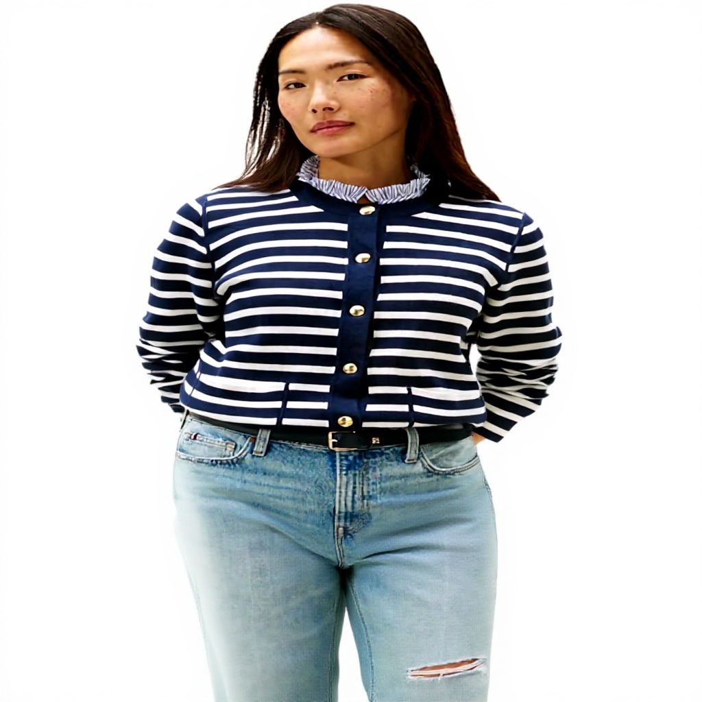 Disponibile in taglie da XXS a 3XL Plus Tall, il cardigan presenta un colore blu navy (Br Stp Navy/Dark Night Navy) e modello WW0WW40846. Realizzato in materiale lavabile in lavatrice e asciugatrice, garantisce praticità nella cura quotidiana.