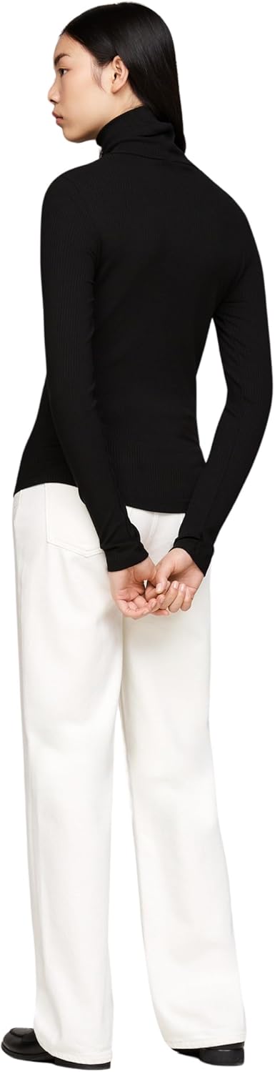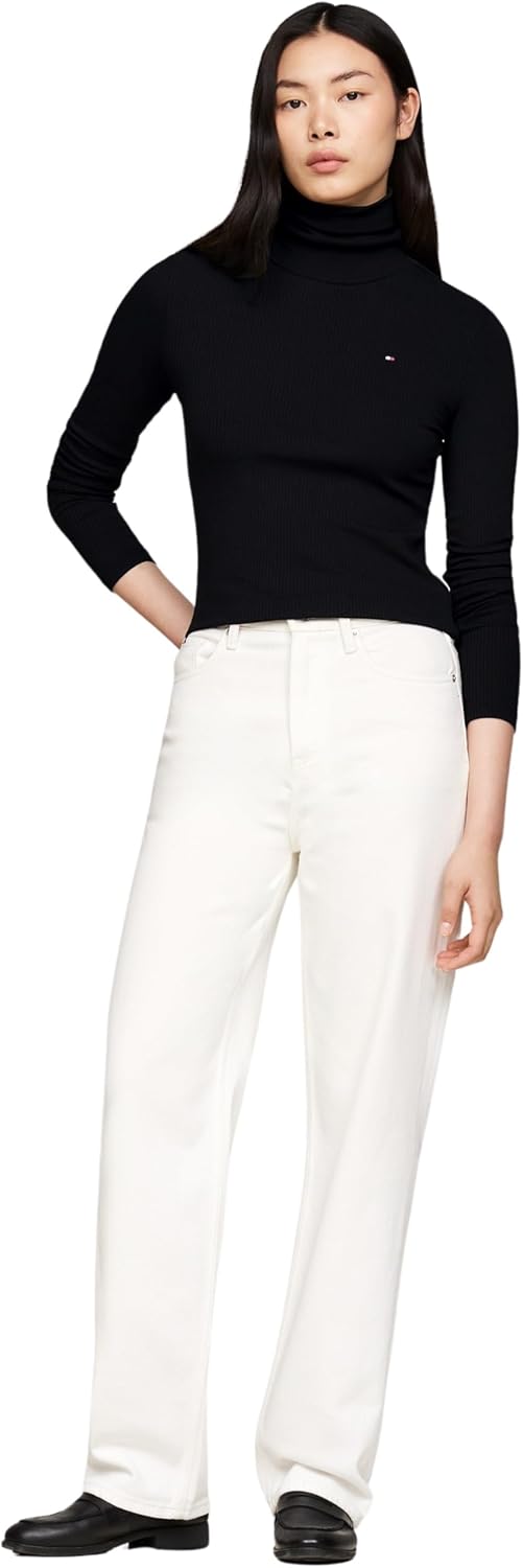 Tommy Hilfiger Pullover Donna Slim Rib Roll-Neck Collo Alto